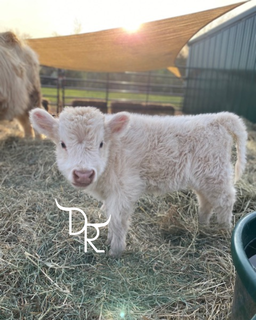 Autumn gave birth to this super fluffy BOY on June 19th! As a first time momma she is doing great and this calf came out wearing the same coat color as mom. Bracken is the sire and this calf will be a yellow, 87.5% Highland, with an incredibly thick coat. He will be ready for his new home in the Nov timeframe.
